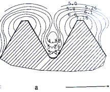вершин «кратера», так и искривление формы канавочной области.
