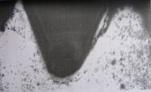 Фотография профиля второго витка резьбы, сформированной при недостаточной