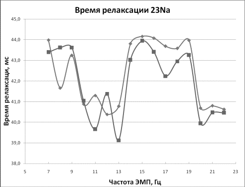 частоты (ЭМП НЧ). Определено, что время релаксации ядер кислорода зависит от