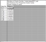 cluster analysis results for 2011