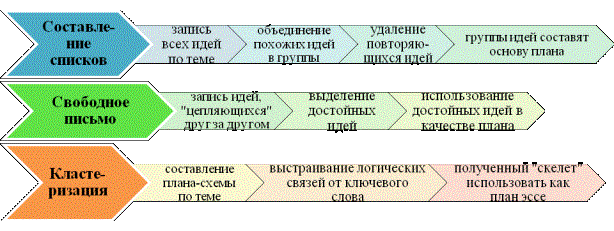 друг друга. Группы идей являются основой плана будущего эссе. Свободным письмом называется запись всех