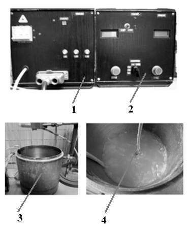 источник питания, 2 – блок управления, 3 – электролитическая ванна с водяным