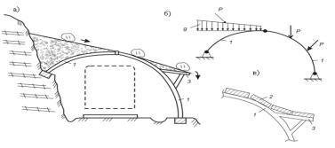 1-криволинейные элементы арки, 2- плита покрытия, 3-консольная часть арки