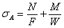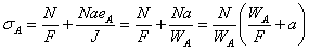 Сжимающее напряжение в волокне А при расположении силы N, указанном на рис.5 выражается по абсолютной величине формулой: