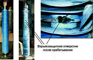 фарфоровые ОПН устанавливают клапаны или мембраны, отводящие избыточное