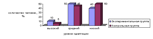 Рис. 2. Уровень адаптации детей в конце эксперимента