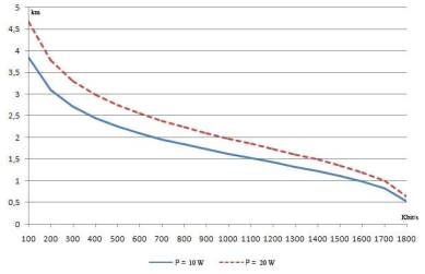 Рисунок 1 – Зависимость радиуса соты от пропускной способности ячейки