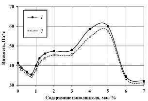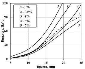 друга, что выражается в понижении вязкости [2]. При содержании ШН 4–5% (кривая 3) наблюдается интенсивный рост