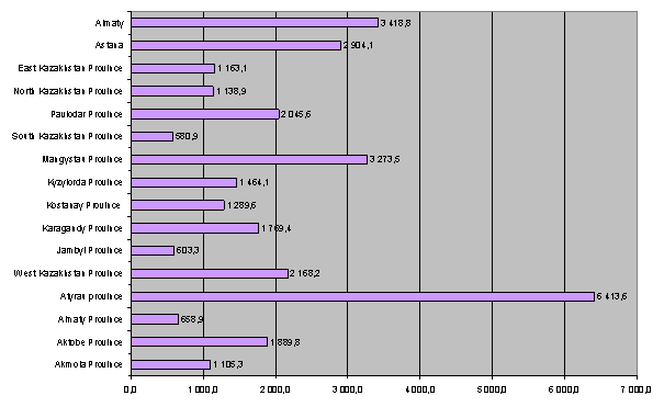 leaders among the regions on this indicator are Atyrau, Mangistau provinces, Almaty