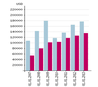 В цілому за минулий рік валовий зовнішній борг України збільшився на $8,81 млрд, або на 7%, тоді як в 2011 році його зростання склало $8,89 млрд, або 7,6% [2]. Його динаміку можна побачити на поданому графіку (Рис. 1):