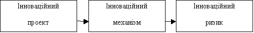 Інноваційні проекти, які реалізуються за допомогою інноваційного механізму, пов’язані з інноваційним ризиком. Схема прояву ризику в інноваційних проектах подана на рис. 1. [5]