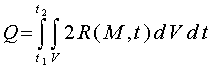 Количество тепла, которое выделяется во всем объеме эластической зоны V за промежуток времени [t1,t2] равно