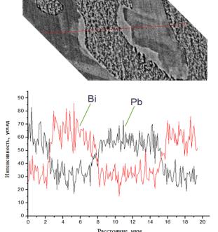 (рисунок 2). В областях, обогащенных висмутом, содержится и свинец, так как