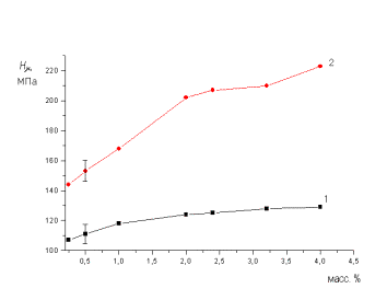 в зависимости от состава представлена на рисунке 2. Микротвердость быстрозатвердевших