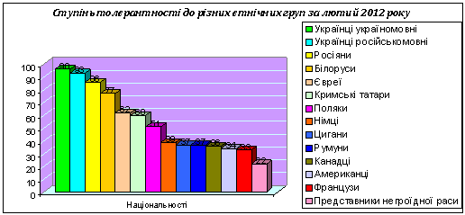 ступінь толерантності до інших груп є досить високим, нажаль найнижчим ступенем