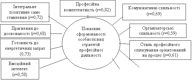 сформованості стратегіального поля діяльності спеціаліста. Цей взаємозв’язок доведений проведеним