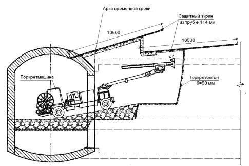 device of working seams is allowed only on a horizontal axis of a tunnel. At the same time conduct concreting of a