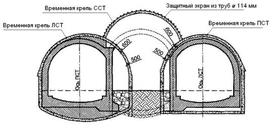 of an cast in-situ lining of lateral tunnels of three-vaulted stations conduct