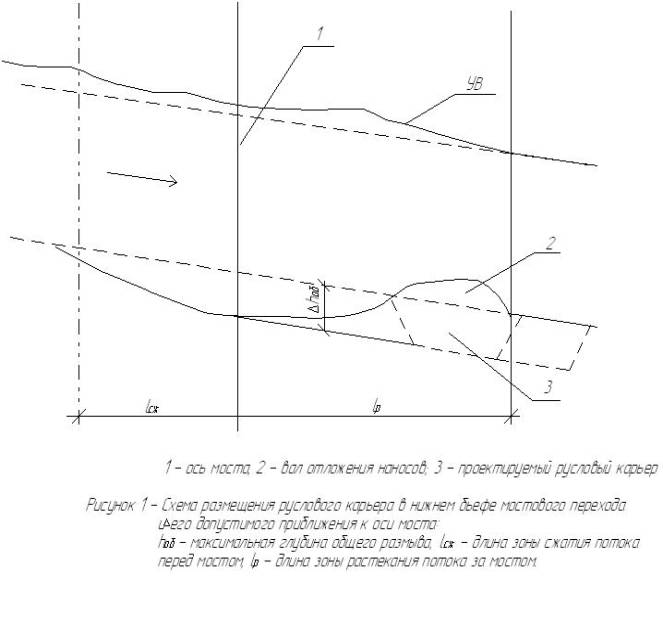 бьефе мостового перехода, так как большие карьеры, располагаемые в верхнем