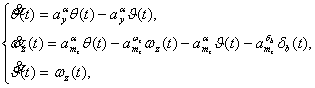 Рассмотрим модель изолированного углового движения летательного аппарата (ЛА), которая в линеаризованном виде будет иметь следующий вид [1].