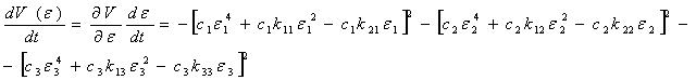 Находим полную производную по времени от вектор-функций Ляпунова с учетом уравнений состояний (4):