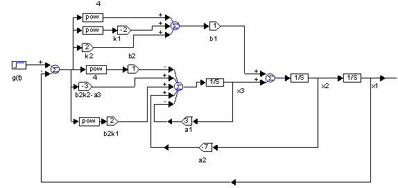 На рисунке 1 показана структурная схема системы (3), реализованная с помощью программного комплекса Vissim 6.0 на рисунках (2), (3), (4), (5) показаны графики.