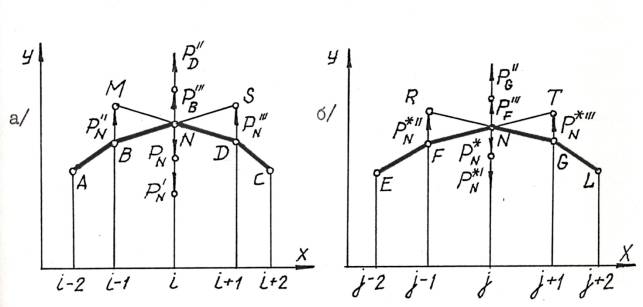 усилий ( рис. 1). Плечом каждого момента будет разность абсцисс смежных узлов,