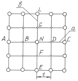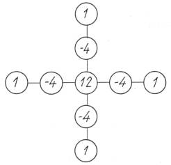 соответствующий ему вычислительный шаблон (рис.2), составляются для незакрепленных узлов дискретных сетей,