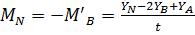 Запишем выражения для изгибающих моментов в узле N, лежащем на ломаной b. Так как усилия, действующие в узлах ломаной b, отличаются коэффициентом К от усилий, действующих в узлах ломаной а