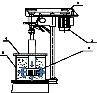 скоростей; 2- электродвигатель; 3-роторный диспергатор; 4-крепление корпуса