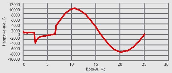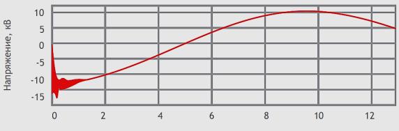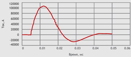 осциллограмма тока при испытаниях МКС на электродинамическую устойчивость.