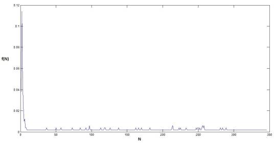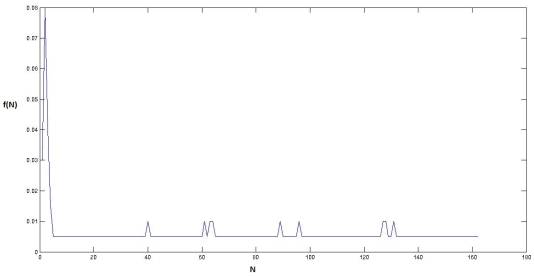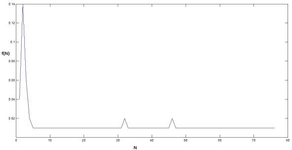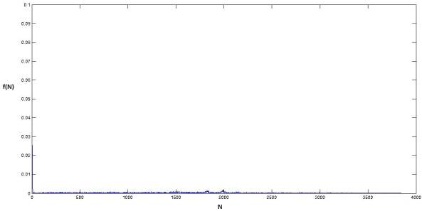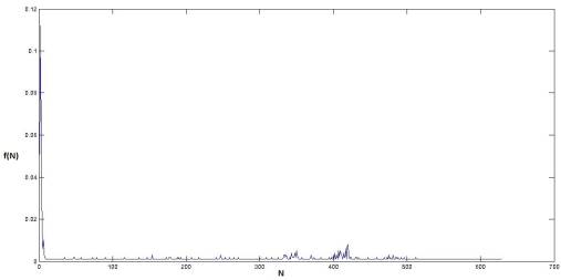 распределения f(N) от длительности интервала времени между поступающими пакетами N [1].