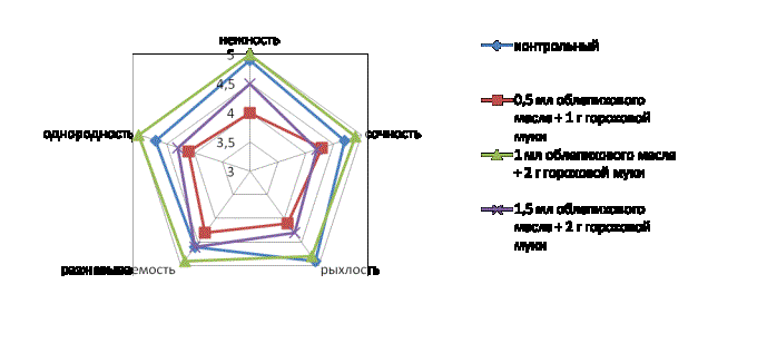масла + 2 г гороховой муки, IV группа – котлеты с 1,5 мл облепихового