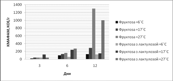 Также показатель кМАФАМ во всех исследуемых сладостях не превышал норматив 1×104 КОЕ/г даже на двенадцатый день