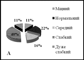 - нормальний, 16 % - середній, 40 % - слабкий і 11 % - дуже слабкий (Рис. 2).
