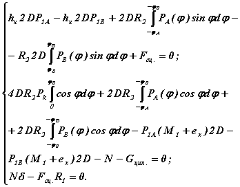 Условия равновесия грузонесущего ролика в предложенной прямоугольной системе координат (см. рис. 2) описываются уравнениями (50)-(52).