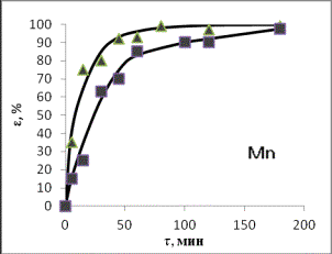 лимитируется скоростью химического взаимодействия, а извлечение марганца