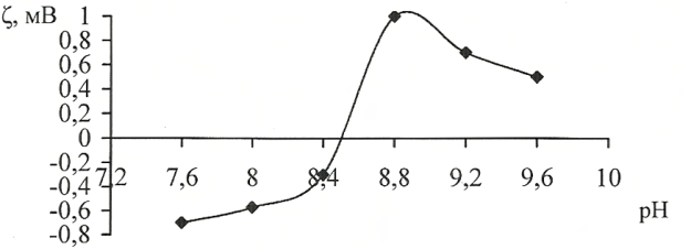 максимальное значение ζ-потенциала наблюдается при рН = 8,8, что соответствует