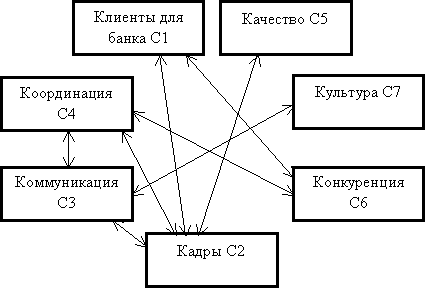 одной стороны, удовлетворение интересов клиентов банка (ось С1) и с другой (ось