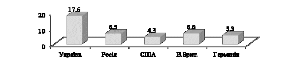 зробити зауваження, що Україна невелика країна і в Росії і США кількість