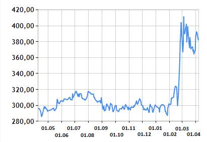 кінця лютого 2014 року, він зріс на ~35% та квітня цього ж року не опускався