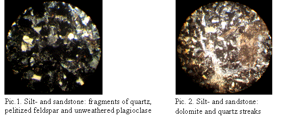 more rarely of medium-grained materials. Single interlayers of siltstones up to