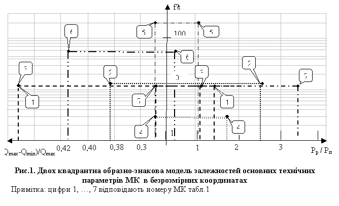 залежності основних технічних параметрів МК в безрозмірних координатах та