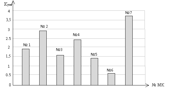 1, 2, ..., 7 відповідають номеру МК з табл. 1