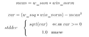 Внутри окна считается сумма яркостей пикселей w_sum и сумма квадратов яркостей w_ssq пикселей с