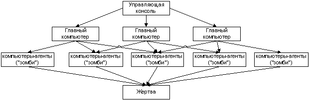 сигнал о начале с управляющей консоли); компьютеры-агенты ("зомби"),