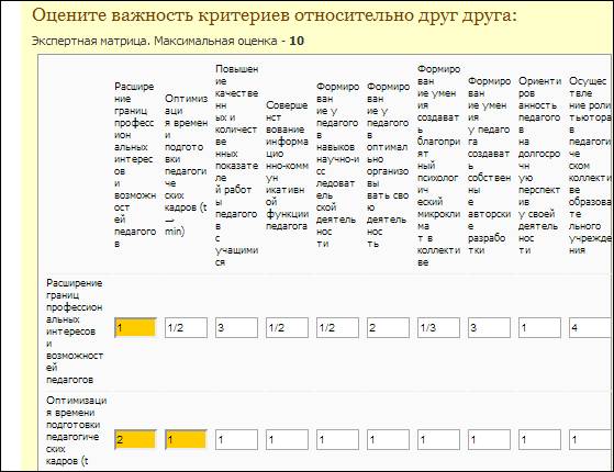 Рис. 1. Пример заполнения экспертной матрицы в системе АСПНИ