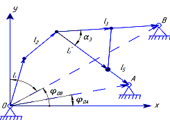 Рассмотрим рычажный механизм с трехповодковой группой,