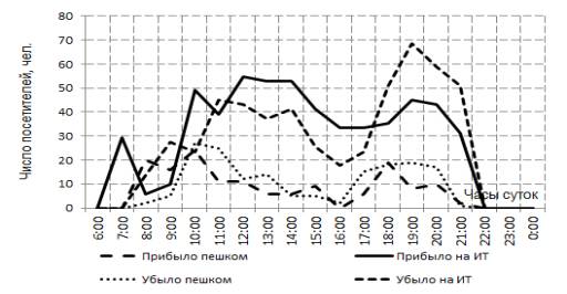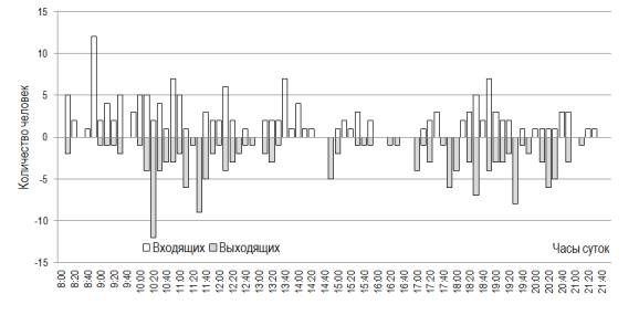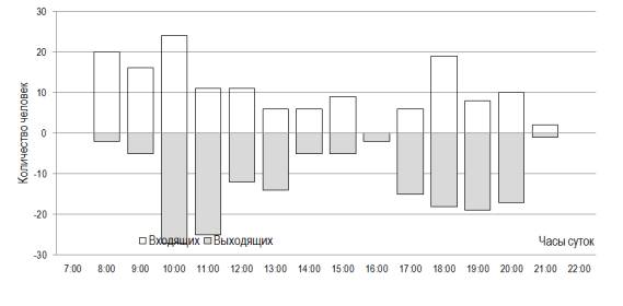 исследования заключалась в определении числа вошедших и вышедших посетителей за