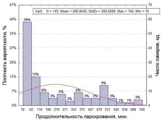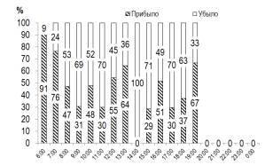 Распределение числа въезжающих и выезжающих транспортных средств на